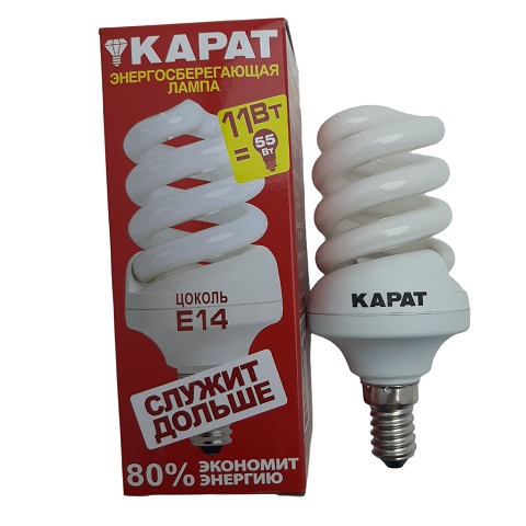 Лампа энергосберегающая Карат, цоколь Е14, предназначена для использования в составе светильников, которые применяют для бытового и общего освещения.