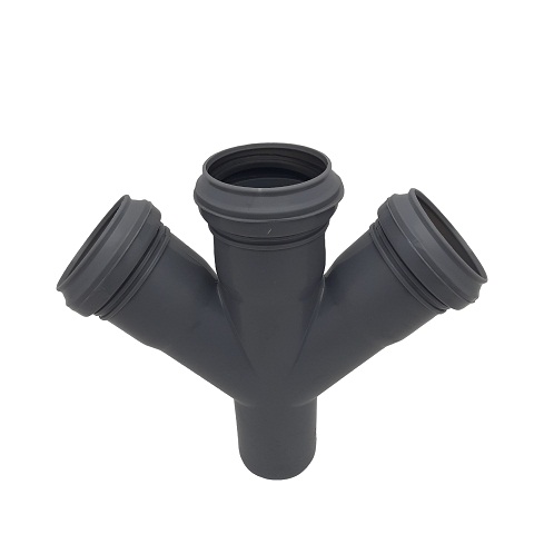 Крест канализационный полипропиленовый косой ф50х50/45 - крестообразная равнопроходная соединительная деталь с тремя раструбами ф50, используется для подсоединения к трубопроводу дополнительных ответвлений под углом 45 градусов в одной плоскости