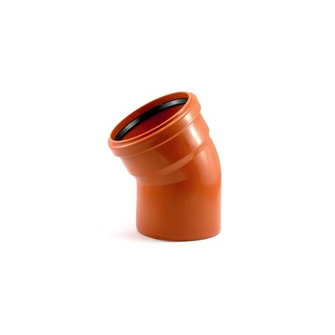 Отвод для канализационной трубы ПВХ ф110х30* применяется для плавного изменения направления движения потока жидкости в трубопроводе. Конструктивно имеет раструб под соединение с помощью резинового уплотнительного кольца с одной стороны и гладкий конец со снятой фаской с другой. Используется для монтажа наружных канализационных сетей.