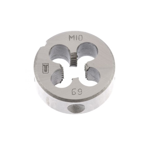 Предназначена для нарезания внешней резьбы ø 10 мм. Отверстия служат для отвода образующейся стружки. Режущие кромки имеют твердость 60 HRc.
