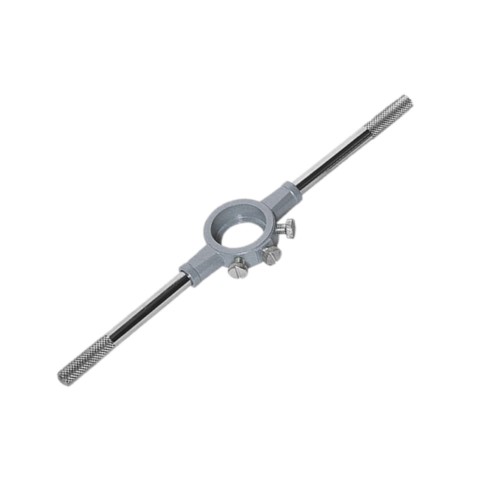 Плашкодержатель обладает разборной конструкцией. Он применяется для удержания плашек при нарезании резьбы.