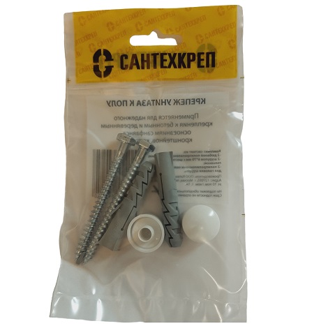 Набор для крепления унитаза к полу используется при монтаже сантехники с высотой основания 10 мм в туалете, санузле или ванной комнате. Заглушки из белого пластика маскируют крепежный узел и препятствуют попаданию пыли и грязи.