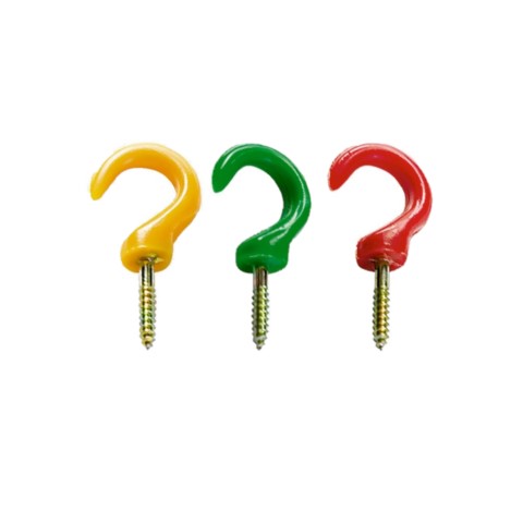 Крюки-вешалки выполнены из металлических саморезов с загнутыми серповидными наконечниками из пластмассы.