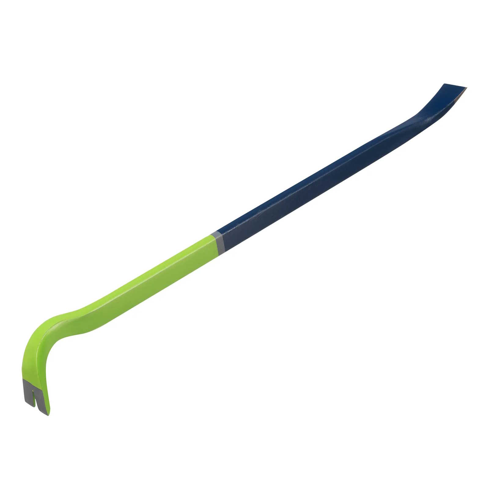 Круглый лом-гвоздодер изготовлен из стали марки 20 и имеет две рабочие части: одна из них цельная для демонтажных работ, другая с клиновидной прорезью для выдергивания гвоздей. Длина инструмента составляет 600 мм. Диаметр: 17 мм.
