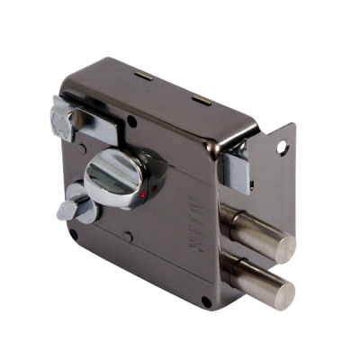 Замок накладной цилиндровый с вертушкой. Предназначен для установки на деревянные двери, толщиной до 40 мм, правого и левого расположения. Засов из двух цилиндрических ригелей диаметром 12 мм, с максимальным вылетом 24 мм.Удаление ключевого отверстия - 60 мм.Габариты корпуса замка - 86х77х25 мм.Механизм замка под англ.ключ, идет, раздельно с корпусом. Закрывание и открывание замка изнутри производится вертушкой, снаружи ключом. Замок имеет функцию блокировки выдвинутого засова изнутри с помощью фиксатора на корпусе. Комплектация - 5 ключей, запорная планка, накладка на цилиндровый механизм, крепеж. Материал корпуса замка и ответной планки сталь. Гарантийный срок – 3 года.